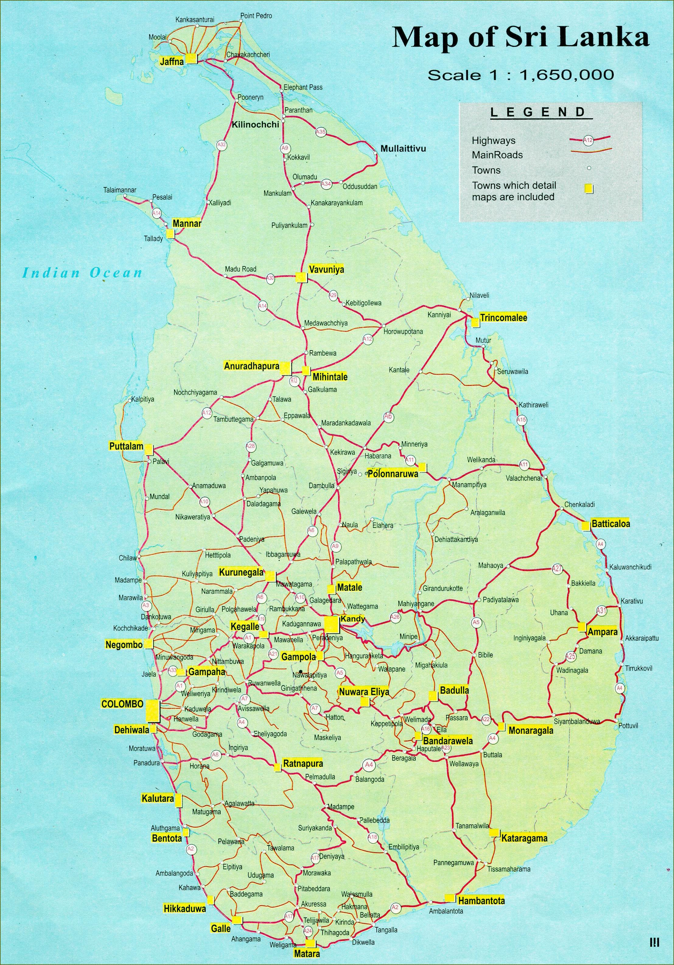 Šri Lanka greitkelių, kelių žemėlapis